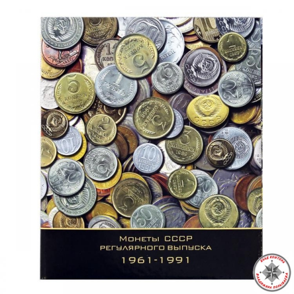 В комплекте 8 листов и разделители с нанесённым изображением монет СССР номиналом 1 копейка-1 рубль 1961-1991.