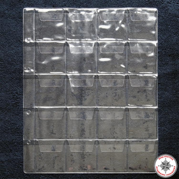 Лист в альбом на 20 монет с кармашками
